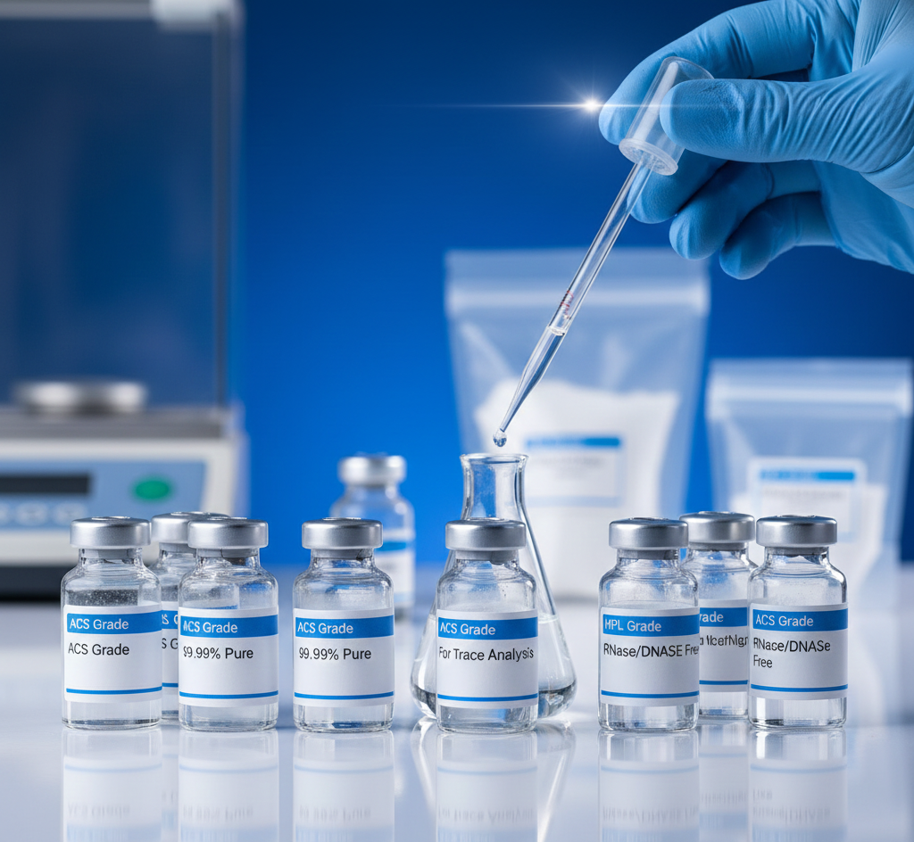| Reagent Grade (AR) | استانداردی عمومی برای تجزیه و تحلیل. | بالا، ناخالصیها زیر حدود ۱ تا ۰.۱٪. | آمادهسازی بافرها، تیتراسیونهای عمومی. |