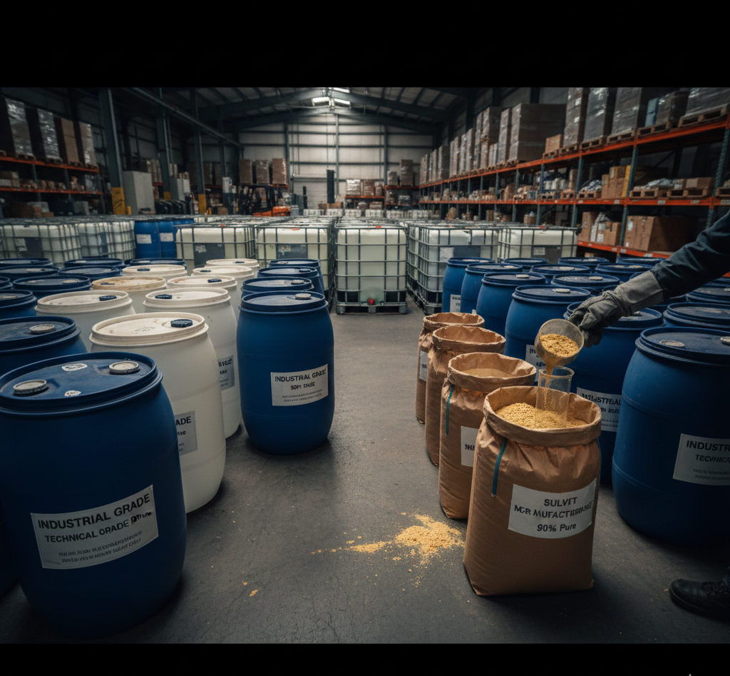 - Technical Grade: مناسب برای مصارف صنعتی گسترده مانند کشاورزی (کودها)، تمیزکاری (حلالها)، و تصفیه آب. این مواد اغلب دارای ناخالصیهای بیشتری هستند و سطح خلوص دقیقی روی برچسب قید نمیشود.