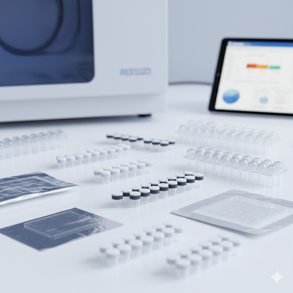 - رینگها و سیلهای چسبی: برای پلیتهای ۹۶ تایی، استفاده از فویلهای آلومینیومی یا سیلهای چسبی شفاف (Optical Seals) که قیمت متفاوتی نسبت به کپهای تکی دارند، مرسوم است.